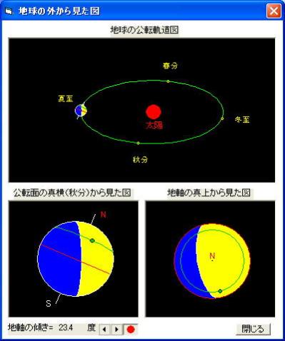 地球の公転軌道図から、地球が指定された年月日にどこに位置するかが分かります。