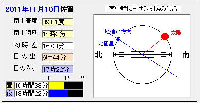 南中高度と南中時刻と均時差の表示を行います。